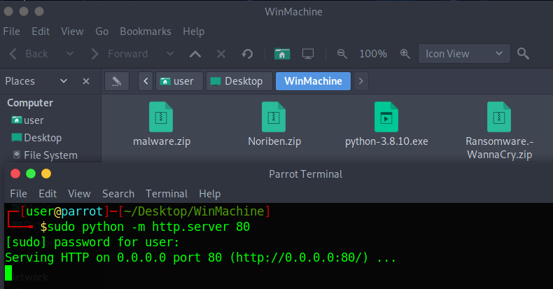 Now let’s serve our file directory on the Linux machine. You need to open a shell in the directory you’ve stored the Windows files and do the following.