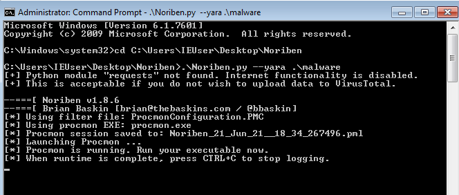 - Extract Noriben and Yara Rules if you’ve archived them like me
